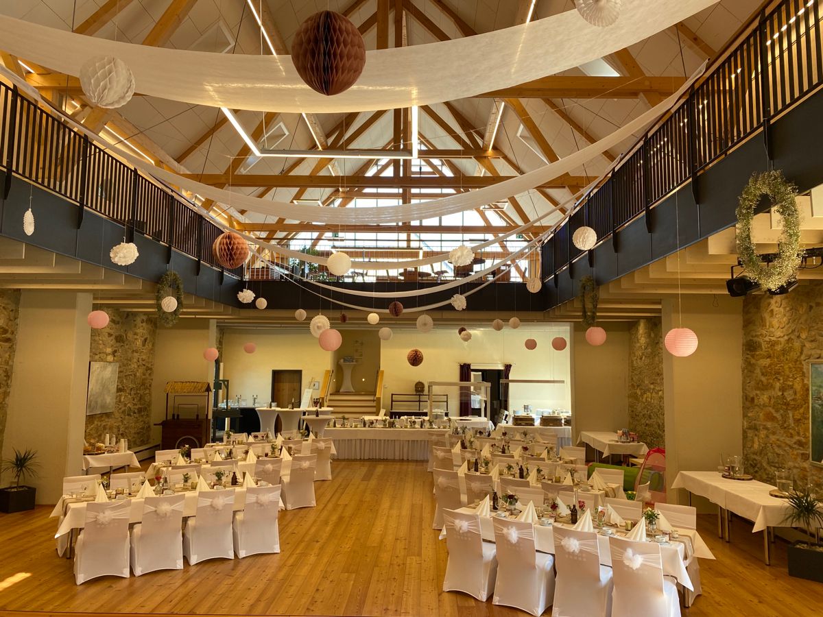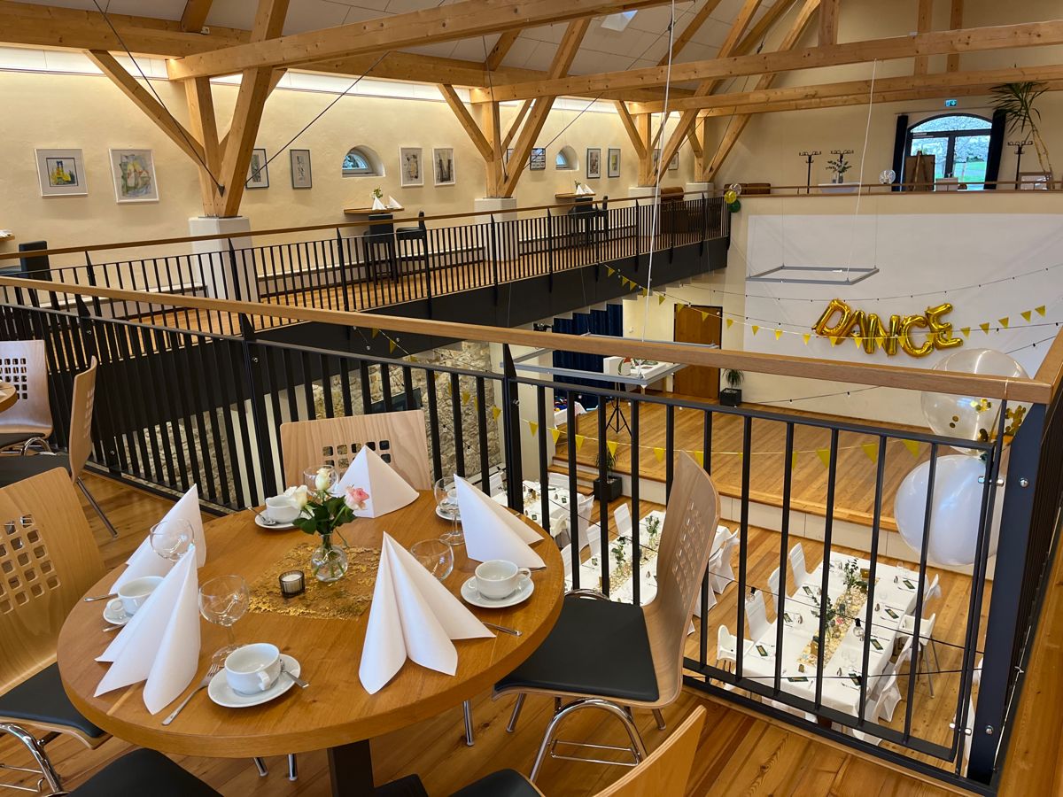 Die Tenne ist perfekt für Feiern, bei denen getanzt wird. Durch die Galerie haben Sie zusätzlichen Raum für Kinder, einen Geschenketisch oder eine gemütliche Sitzecke abseits des Trubels.