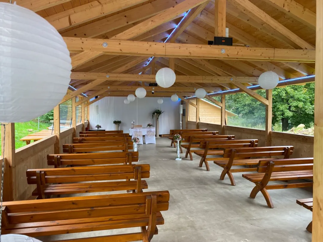 Die Kulturscheune ist unsere größte und flexibelste Location. Auf zwei Stockwerken mit zwei Terrassen bietet sie Ihnen maximalen Raum für Ihre Feier. Die eingebaute Bühne kann als Tanzfläche genutzt werden oder für Live-Musik und Programmpunkte. Im Obergeschoss erwartet Sie eine großzügige Lounge – ideal für Kinderspielecke, Fotoecke, Geschenketisch oder einfach als Rückzugsort.